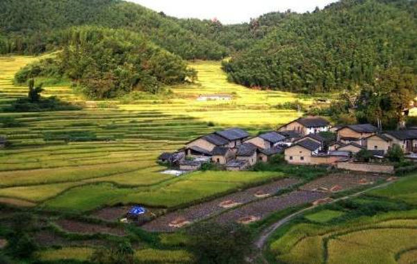 水若左来穴居右,高低田埂似抛梭。