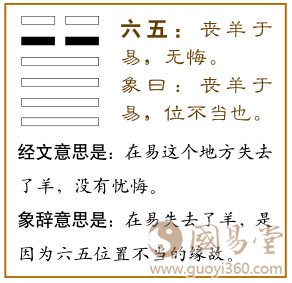 象辞意思是:在易失去了羊,是因为六五位置不当的缘故。