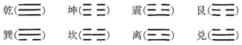 这八大自然现象,就是八卦,一横为阳爻,一横中间断开的为阴爻。清楚的说,就是由阴爻和阳爻两次重替而构成了八卦。