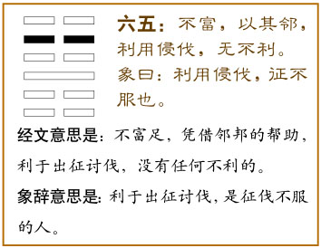 本爻的意思是:虽不富有,但能得到邻居的支持。适宜进行征伐,不会有任何不利的结果。