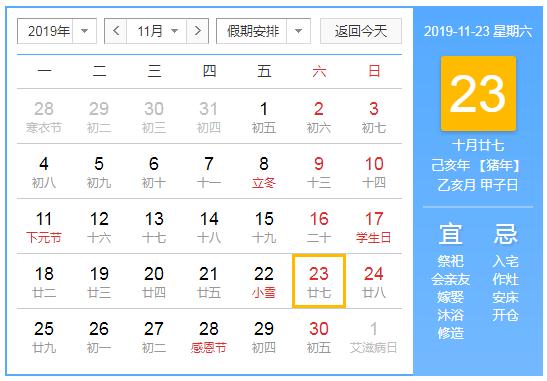 2019年11月23日黄历查询,2019年11月23日公历农历查询