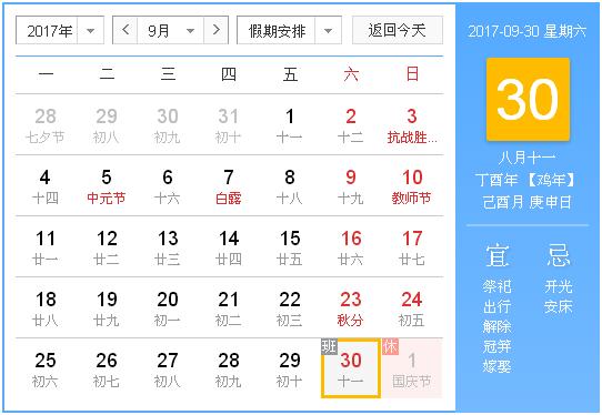 公历:2017年9月30日 星期六