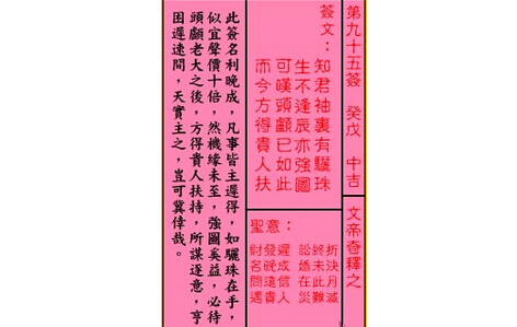 关公灵签解签 第九十五签 癸戊 中吉