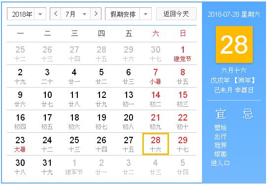 2018年7月28日黄历,2018年7月28日黄历查询