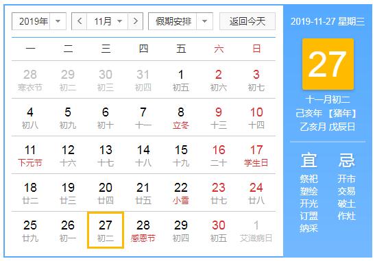 公历:2019年11月27日 星期三