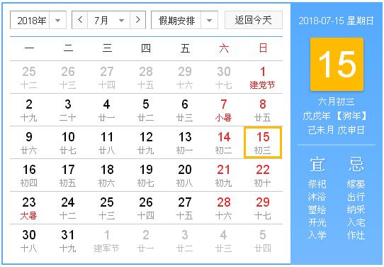 公历:2018年7月15日 星期日