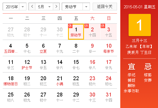 以上就是2015年劳动节放假安排的详细内容,更多请关注解梦佬算命网其它相关文章。