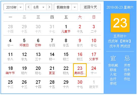 公历:2018年6月23日 星期六